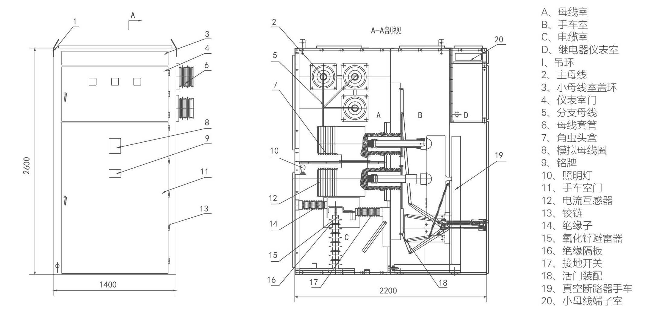 > 开关设备内的电器元件的型号、规格、数量;