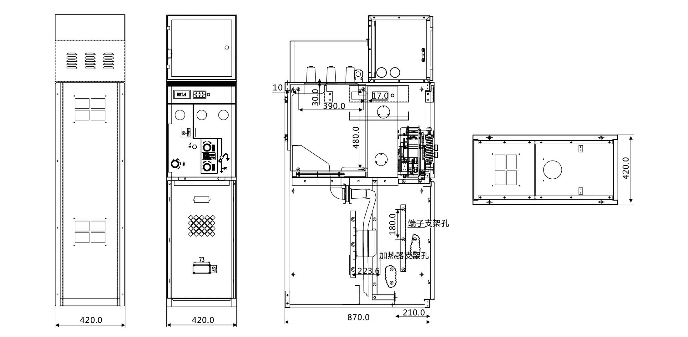 >防护等级:带电体密封IP67,熔断器筒IP67,开关柜外壳IP4X。
