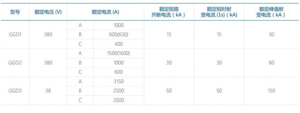GGD型交流低压配电柜适用于发电厂、变电站、厂矿企业等电力用户的交流50Hz,额定工作电压380V,额定工作电流至3150A的配电系统,作为动力、照明及配电设备的电能转换、分配与控制之用。
