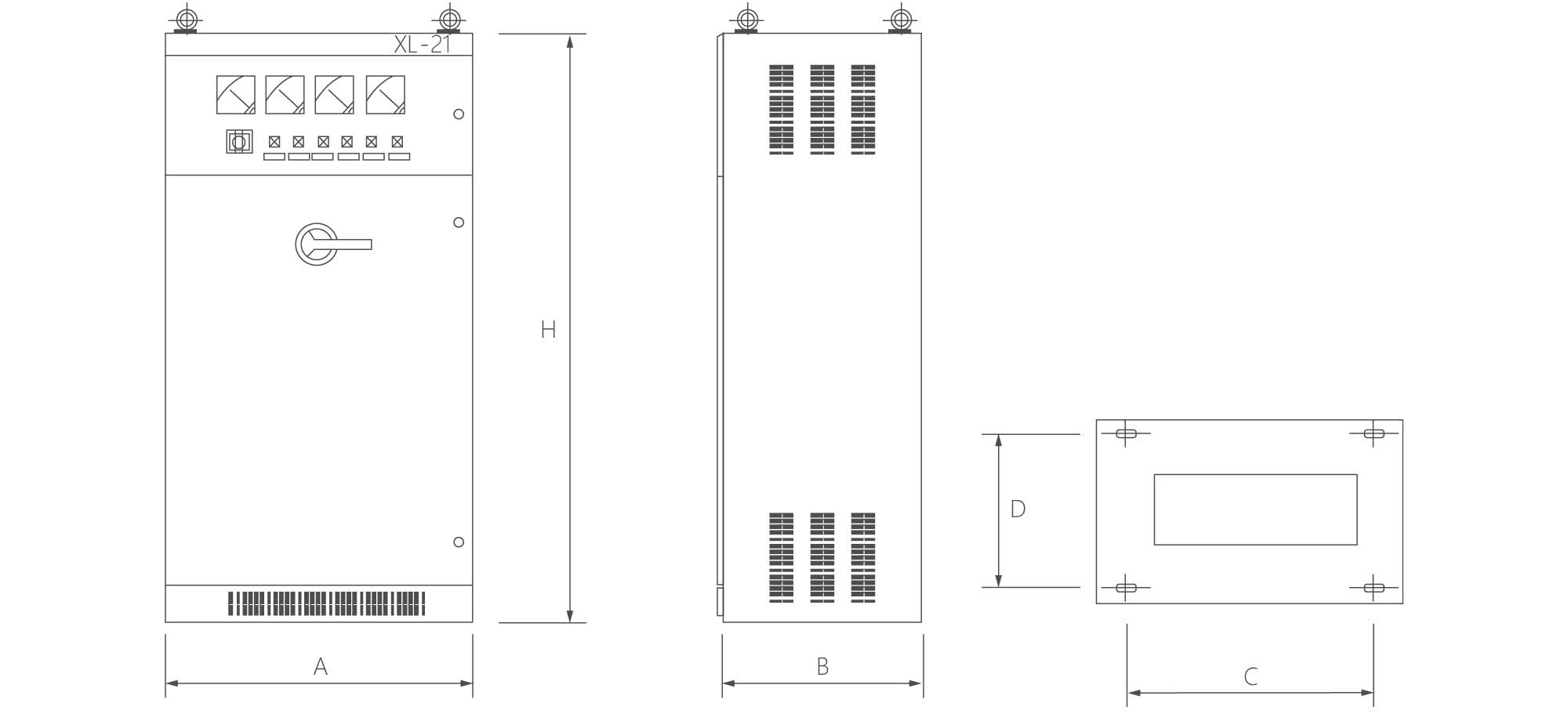 XL-21动力柜广泛用于发电厂及工矿企业中,在三相交流500V以下三相三线、三相四线、三相五线等配电系统中作动力或照明配电之用,系户内靠墙安装,屏前操作,屏前检修;箱体为全封闭结构,由C型材或8MF型材拼装而成。箱内采用新型旋转式负荷隔离开关,可带负荷操作,正面门上装有电压、电流指示仪表以及信号灯、按钮、转换开关等主令元件。本配电箱内采用的组件,结构紧凑,造型美观大方,维护方便,多种接线方案可供用户选择。